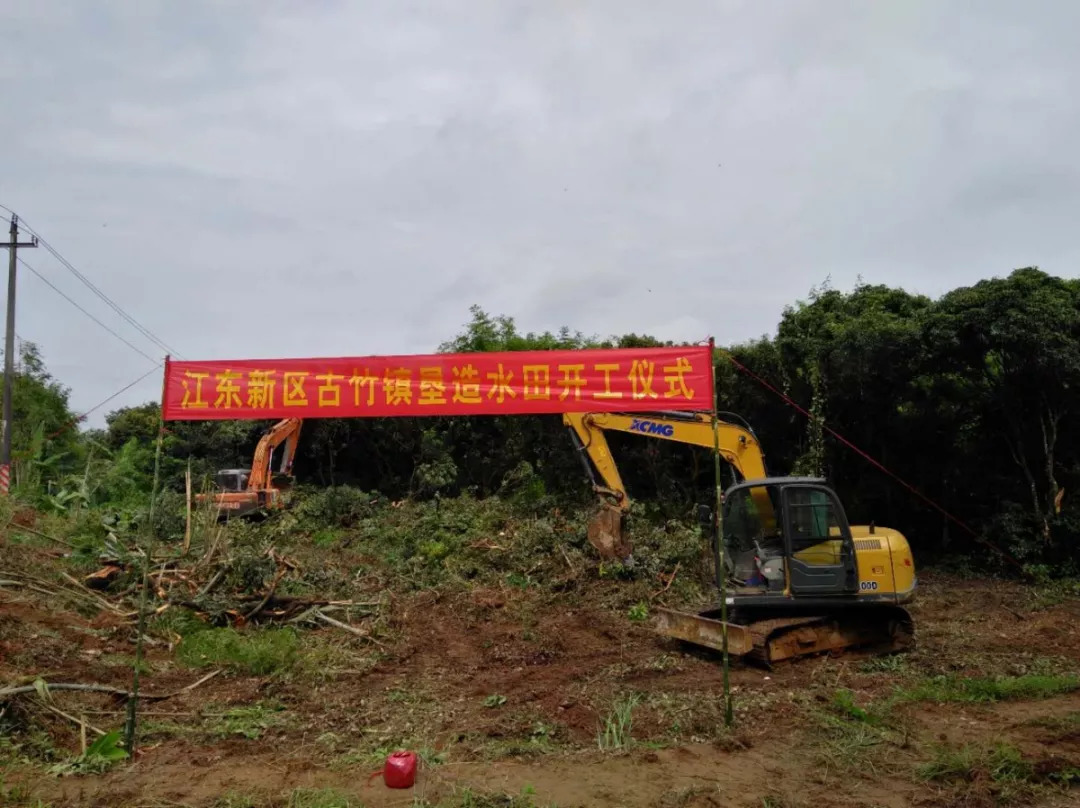 8月28日,江东新区古竹镇垦造水田项目分别在该镇榄溪村、蓼坑村清表破土,正式动工。
