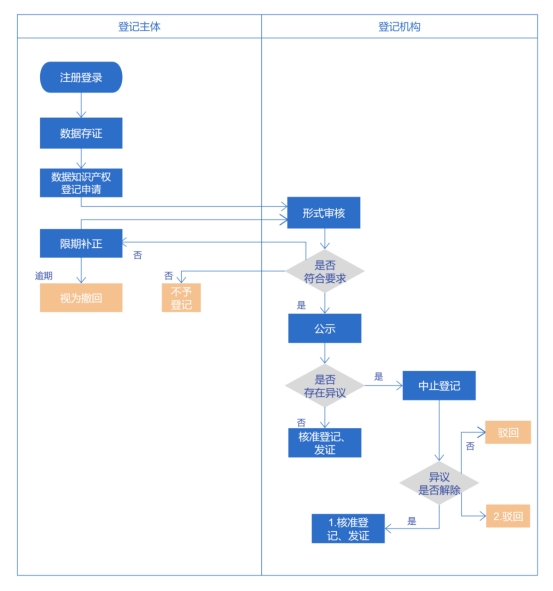 (一)登记前的数据存证。申请登记的数据集合应提前存证,即利用特定技术对数据集合进行记录和保存。经存证的数据集合可被验证和追溯,时间可信,不可篡改。